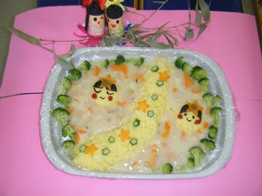 そこで保育園給食では、質、量、栄養を十分に考え、変化にとんだ献ァを立てると共に、マナー習慣や楽しく食事ができるように、いろいろと配慮しています。
